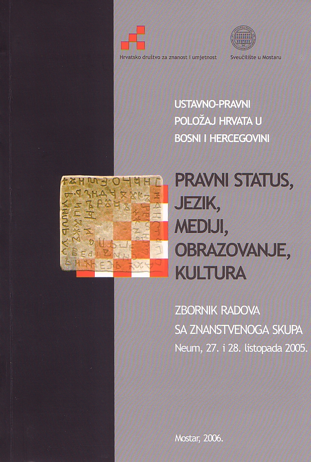 AA. VV., Ustavno-pravni položaj Hrvata u Bosni i Hercegovini. Pravni status, jezik, mediji, obrazovanje, kultura. Zbornik radova sa znanstvenog skupa, Neum, 27. i 28. listopada 2005., HDZU – Sveučilište u Mostaru, Mostar, 2006.