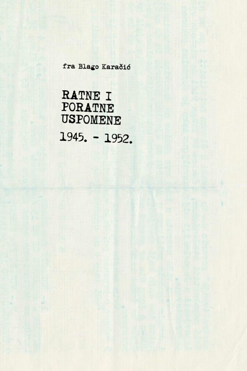 Fra Blago Karačić nije u miru i tišini napisao djelo pred nama. Ispisivao ga je najmanje tri puta i isto toliko puta uništavao. Zbog čega? »Čim su udbaši zamaknuli, požurio sam se u svoju sobu. Na stolu mi je bila rastvorena teka u koju sam bilježio uspomene iz rata. Da su mi je našli, zadugo se ne bih iskopao s robije. Možda bi mi i glava otišla. A ovo mi je treći put kako pokušavam zapisati nešto od onog što sam u ratu i nakon rata doživio, ali nemam sreće. Uhvatio me strah i teku sam odmah spalio. Nešto sam bio počeo pisati dok sam bio župnik u Blagaju, ali sam odustao jer su u župni stan bili ugurani dvojica milicionara kao podstanari. Ovdje u Vitini bio sam prije podosta napisao i, da mi Udba to ne nađe, presavio, strpao u dvije zahrđale konzerve, zatukao i utisnuo u zid u napola srušenoj štali. Vražji su miševi gotovo sve izgrizli. I, eto, opet ne bi sreće...« (str. 5. – 6.) Tako se stvarala naša povijest, hrvatska, ona jugokomunistička stvarala se uz potoke novca i nisu je izjeli miševi, ali jest naš krik za slobodom.