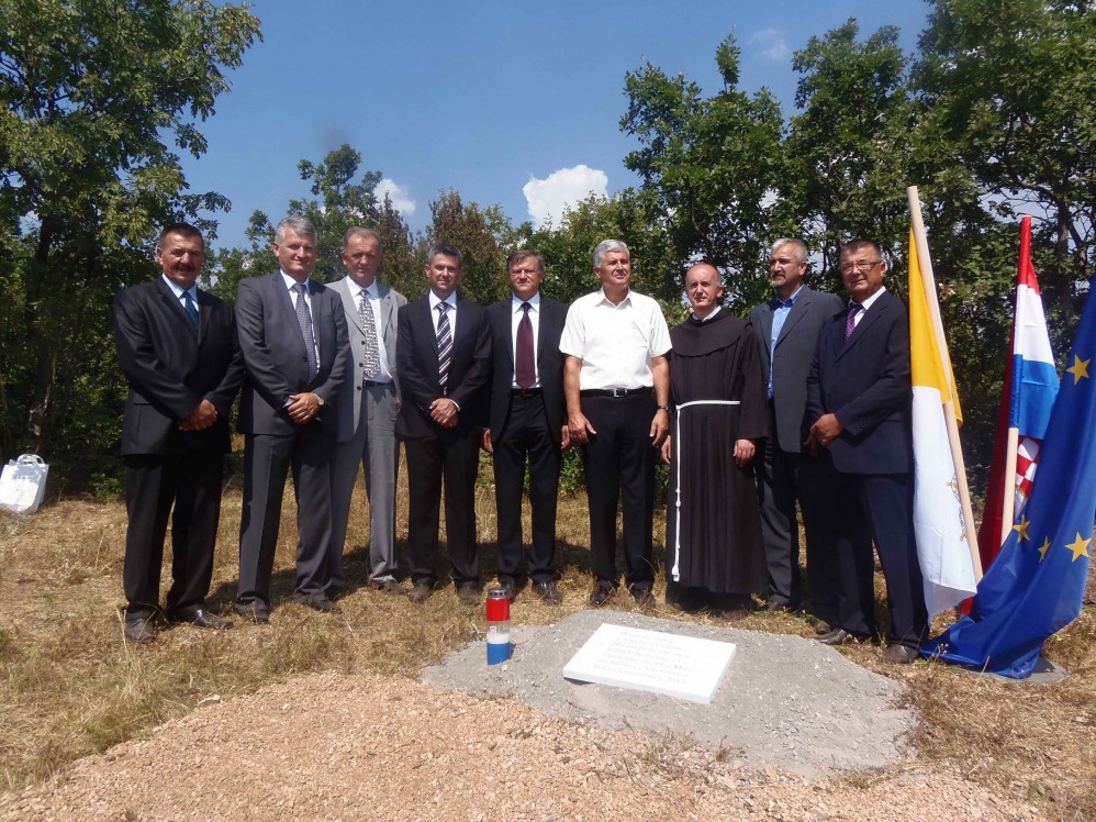 Bile, 24. kolovoza 2013. (M. J. / hrsvijet.net) – Na području Bila, lokalitetu između Mostara i Širokog Brijega, jučer, 23. kolovoza, na Europski Dan sjećanja na žrtve totalitarizama položen je kamen temeljac za izgradnju najvećeg groblja mira u Europi. U mjestu Misišta na visoravni Bile položili su ga predsjednik Hrvatskoga narodnog sabora (HNS) BiH i predsjednik HDZ-a BiH Dragan Čović te predsjednik Koordinacije povjerenstava za obilježavanje i uređivanje grobišta iz Drugog svjetskoga rata i poraća Ilija Vrljić. Kamen je temeljac blagoslovio don Ivan Turudić, vojni dušobrižnik.