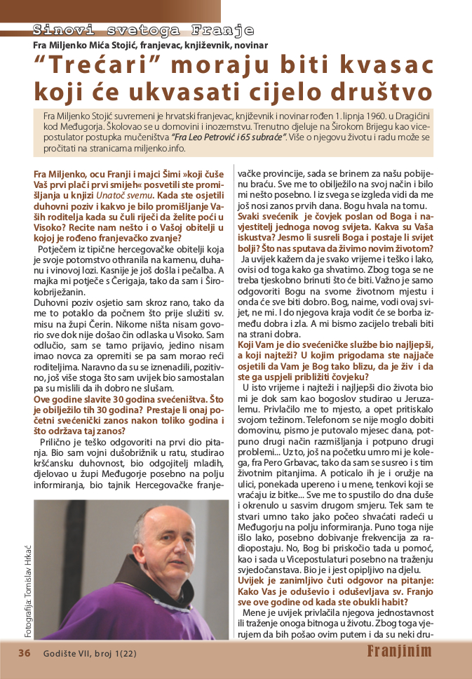 Mostar, 7. veljače 2018. (Zoran Krešić / Večernji list) – Čak 66 franjevaca ubijeno je u odmazdama u zimu i proljeće 1945. Godinama vicepostulator postupka mučeništva »Fra Leo Petrović i 65 subraće« fra Miljenko Stojić predano radi na rasvjetljavanju istine o ovom monstruoznom zločinu. Pokrenute su brojne akcije, a među njima je postupak za proglašenje ubijenih franjevaca blaženima.