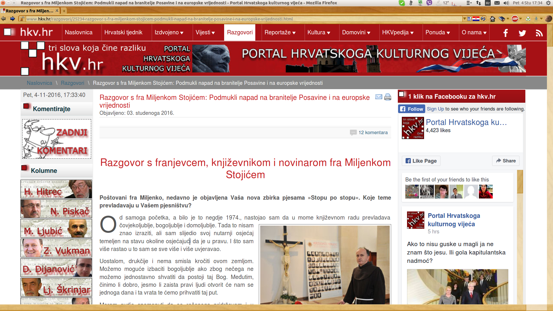 Razgovor s franjevcem, književnikom i novinarom fra Miljenkom Stojićem