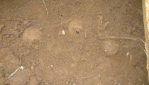 Najlonom smo bili pokrili zemlju pa kopanje ne ide teško unatoč kiši koja je padala kroz proteklo vrijeme. Kao i prvi put, sondom smo pogodili područje masovne grobnice pa su se kosti ubrzo pokazale. Po svemu sudeći ponovno su tijela nabacana bez ikakvog reda. Trebat će se pomučiti i odrediti koja kost pripada kojem tijelu.