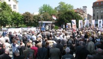 Zagreb, 7. svibnja 2011. (hrsvijet.net) – Ispred zagrebačkoga Hrvatskog narodnog kazališta danas je, u organizaciji građanske inicijative Krug za trg, održan prosvjedni skup pod geslom »Uklonimo komunističkog diktatora Tita iz Zagreba i Hrvatske«. Prosvjednicima su se obratili Tomislav Jonjić, fra Miljenko Stojić, Jože Dežman, Zdravka Bušić, Josip Miljak, Željko Tomašević te predsjednica udruge »Krug za trg« Maja Runje.
