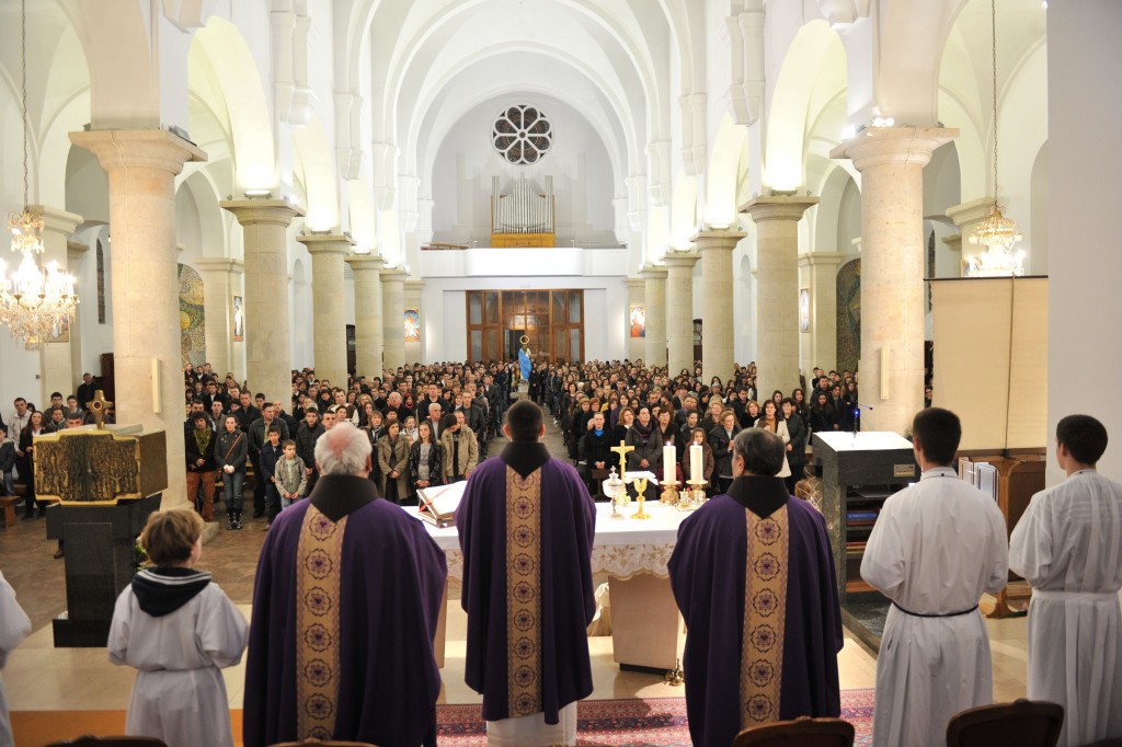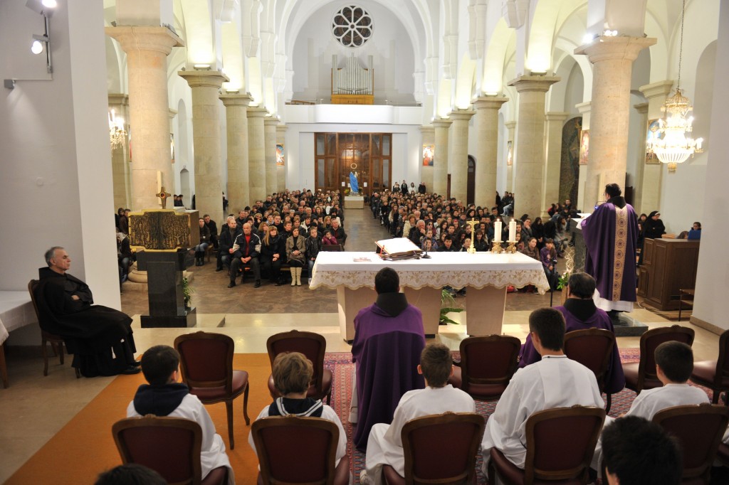 Široki Brijeg, 7. veljače 2011. (Gojko Jelić / Vicepostulatura) – U predvečerje 66. obljetnice ubojstva 66 hercegovačkih franjevaca, 6. veljače, sv. misu zadušnicu predvodio je širokobriješki gvardijan fra Sretan Ćurčić u suslavlju s fra Danom Karačićem i dr. fra Andrijom Nikićem. Misno slavlje su svojim pjevanjem i čitanjem misnih tekstova animirali širokobriješki framaši koji su na ovoj nedjeljnoj svetoj misi ispunili do kraju širokobriješku crkvu.