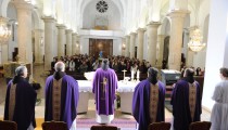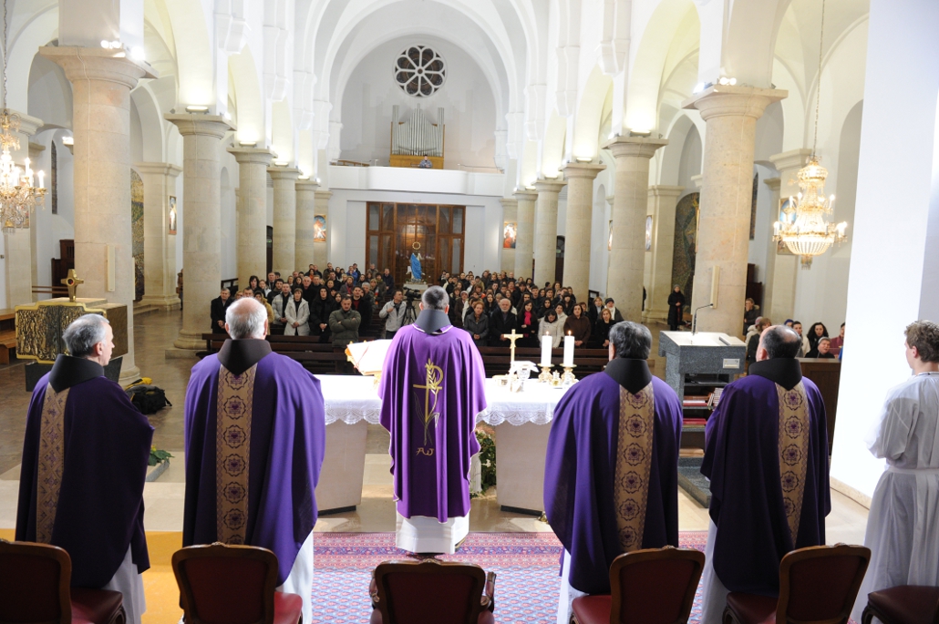 Široki Brijeg, 7. veljače 2012. (Gojko Jelić / Vicepostulatura) – Svetu misu zadušnicu za pobijene fratre i nevino stradali katolički puk treće večeri na 2. danima pobijenih hercegovačkih franjevaca predslavio je fra Sretan Ćurčić, širokobriješki gvardijan, u suslavlju s vicepostulatorom fra Miljenkom Stojićem, fra Vitomirom Musom, fra Danom Karačićem i fra Vendelinom Karačićem. Misna čitanja i molitvu vjernika pročitali su članovi FSR-a Široki Brijeg, a liturgijsko pjevanje predvodila je č. s. Jasminka Pandžić.