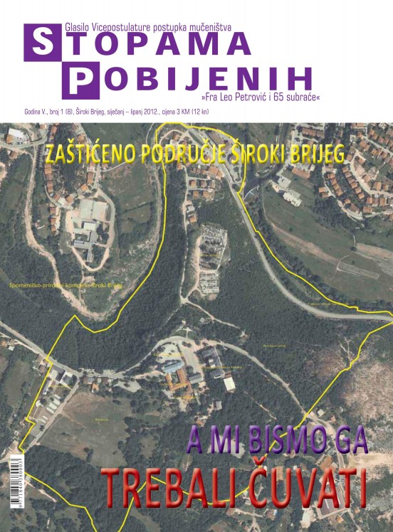 Zagreb, 20. travnja 2012. (Branko Pilaš / Hrvatsko slovo) – Otvarajući stranice Stopama pobijenih čitateljevu pozornost odmah privlači niz fotografija pobijenih hercegovačkih franjevaca. U vremenskom razdoblju od 1942. do 1945. nestalo je 66 franjevaca. Njihovi su grobovi samo jednim dijelom poznati. U Širokom Brijegu počivaju 22, u Kočerinu 2, Čitluku 3, Međugorju 1 i u Macelju 3 franjevca. Uredništvo obavješćuje čitatelje da su franjevce »pobili komunisti« i u isto vrijeme traži »svjedočenje glede njihova pogubljenja«. Osim toga čitatelji se pozivaju da »objave ako su na njihov zagovor dobili neku milost ili čudo«.