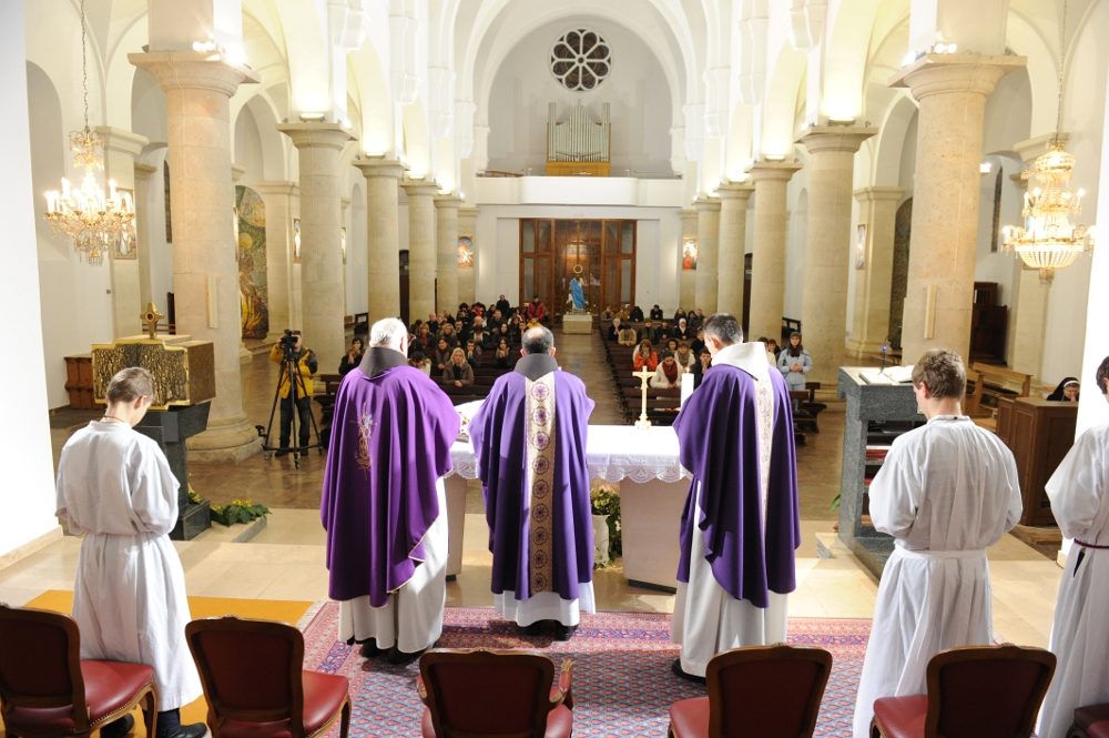 Široki Brijeg, 7. veljače 2012. (Gojko Jelić / Vicepostulatura) – Svetu misu zadušnicu za pobijene fratre i nevino stradali katolički puk treće večeri na 2. danima pobijenih hercegovačkih franjevaca predslavio je fra Sretan Ćurčić, širokobriješki gvardijan, u suslavlju s vicepostulatorom fra Miljenkom Stojićem, fra Vitomirom Musom, fra Danom Karačićem i fra Vendelinom Karačićem. Misna čitanja i molitvu vjernika pročitali su članovi FSR-a Široki Brijeg, a liturgijsko pjevanje predvodila je č. s. Jasminka Pandžić.