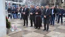 Široki Brijeg, 5. veljače 2014. (www.sirokibrijeg.ba) – Na Trgu širokobrijeških žrtava kod križa u središtu Širokog Brijega, u sklopu obilježavanja »Dana sjećanja na pobijene franjevce i puk«, položen je vijenac i zapaljene svijeće za sve pobijene franjevce i puk. Vijenac su položili, svijeće zapalili i pomolili se za duše pobijenih općinski načelnik Miro Kraljević, predsjednik Općinskog vijeća Vinko Topić, vicepostulator postupka mučeništva »Fra Leo Petrović i 65 subraće« fra Miljenko Stojić i Pero Kožul, predsjednik Povjerenstva za obilježavanje i uređivanje grobišta iz Drugog svjetskog rata i poraća. Nazočili su predstavnici općinske i županijske izvršne i zakonodavne vlasti, te predstavnici udruga proisteklih iz Domovinskog rata.