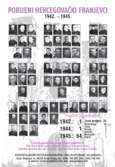 Molimo sve pučke i srednje škole s hrvatskim nastavnim programom te Sveučilište u Mostaru da u nastavi povijesti spomenutih dana održe prigodno predavanje o pobijenim hercegovačkim franjevcima i povijesnom okviru u kojem se to dogodilo. Svima unaprijed zahvaljujemo!