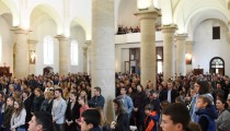 Prostrana samostanska crkva bila je dupkom ispunjena. Svojim čitanjem sv. misu su uveličali članovi Franjevačkog svjetovnog reda koje predvodi fra Dana Karačić, a svojim pjevanjem veliki župni zbor pod ravnanjem s. Mire Majić.