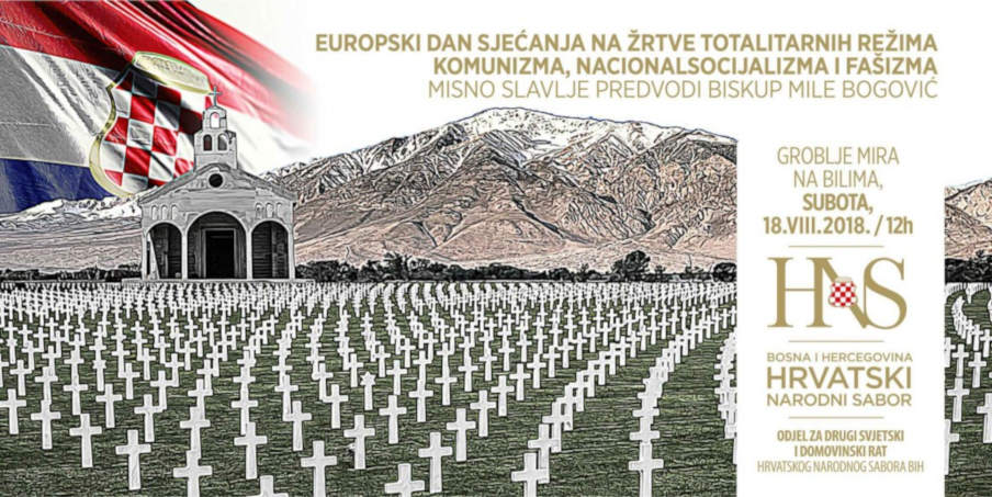 Bile, 11. kolovoza 2018. (Lucijana Kožul) – Europski dan sjećanja na žrtve totalitarizama: komunizma, nacionalsocijalizma i fašizma obilježava se svake godine 23. kolovoza. U organizaciji Odjela HNS-a BiH za drugi svjetski i Domovinski rat bit će kao i do sada primjereno obilježen.