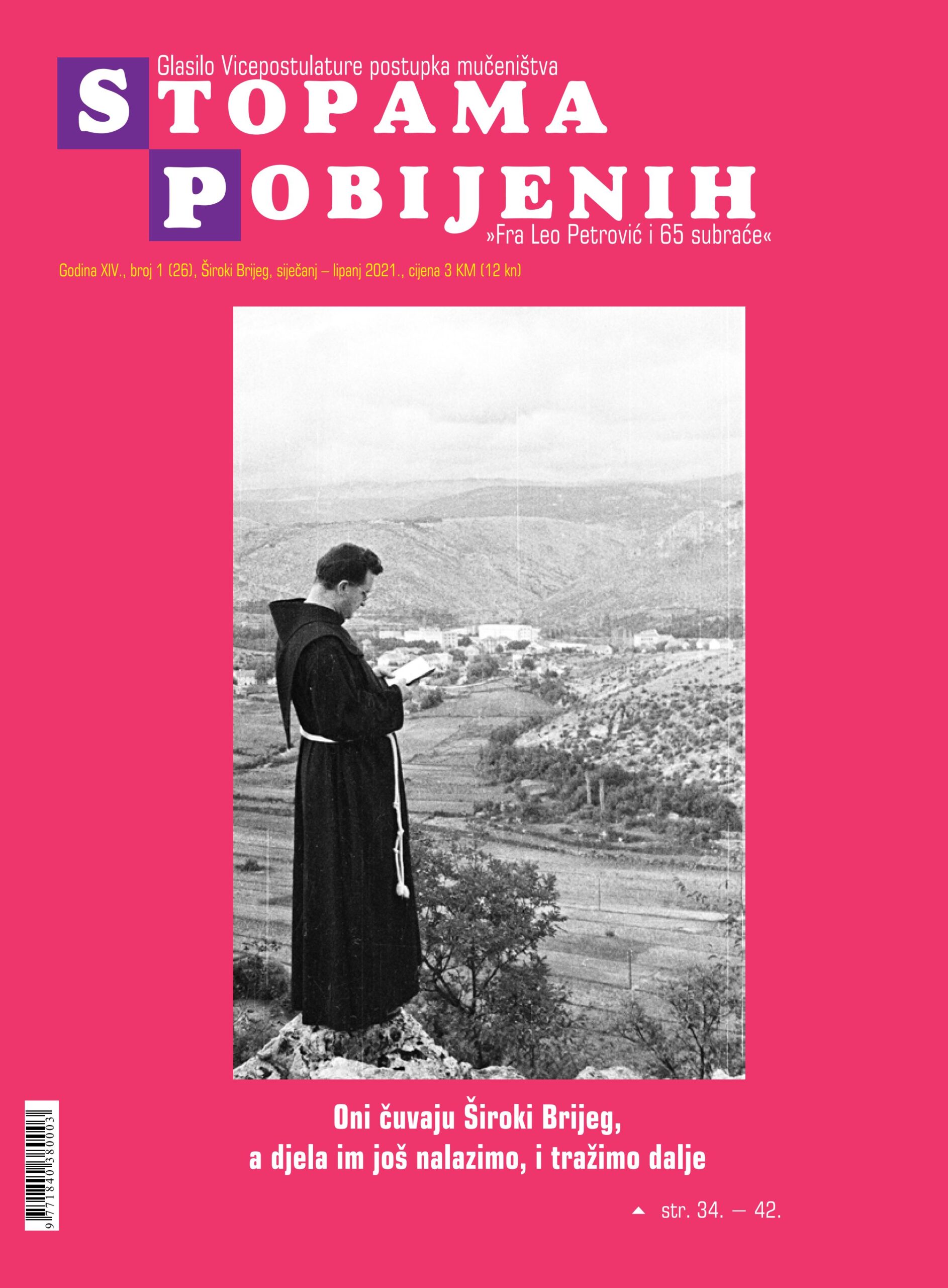 Široki Brijeg, 25. siječnja 2021. (Kristina Raguž) – U izdanju Vicepostulature postupka mučeništva »Fra Leo Petrović i 65 subraće« izišao je 26. broj glasila »Stopama pobijenih« kojeg Vicepostulatura izdaje dvaput godišnje. Glavni mu je i odgovorni urednik fra Miljenko Stojić, vicepostulator.