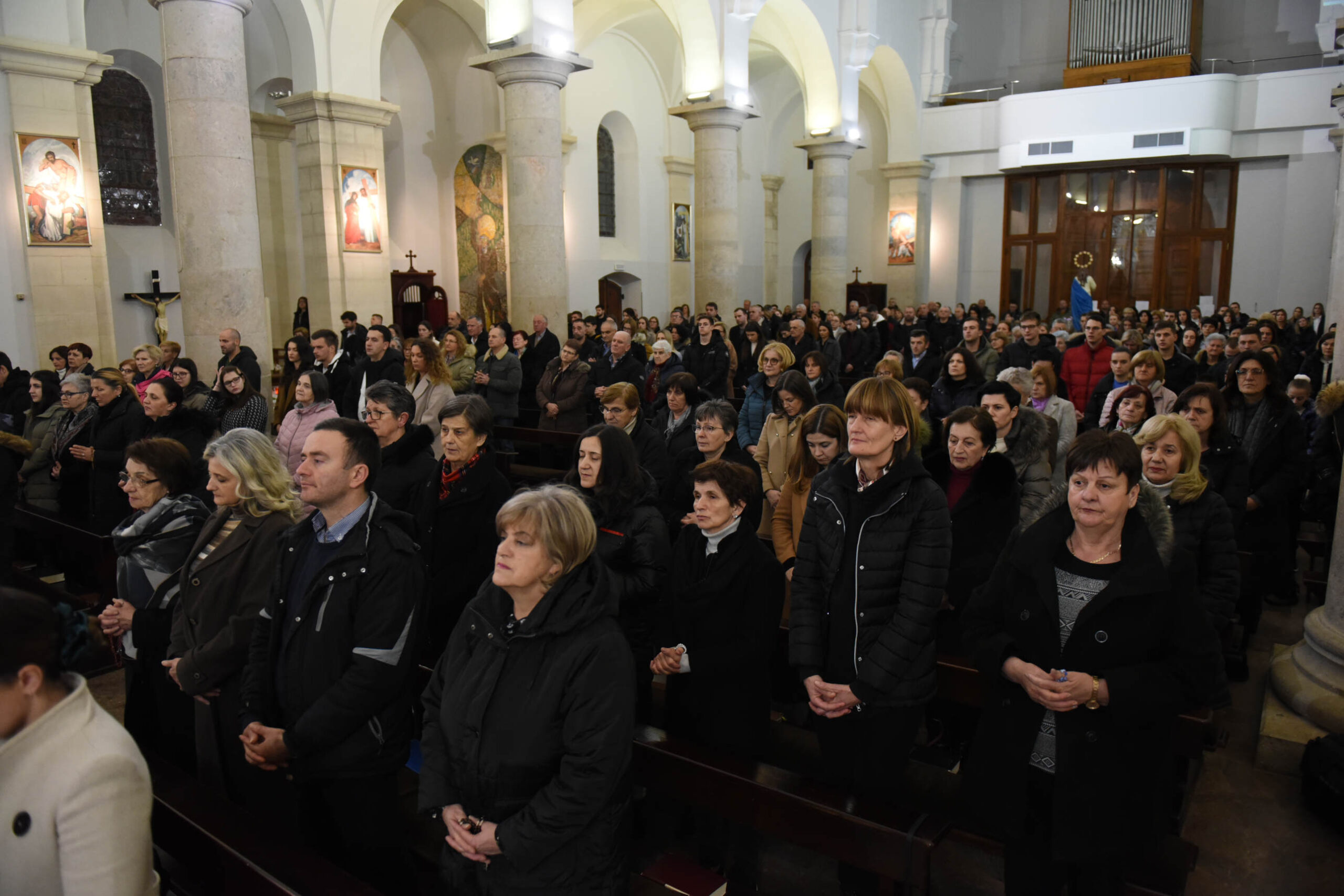 Široki Brijeg, 5. veljače 2022. (Lucijana Kožul) – Molitveni program druge večeri obilježavanja »Dana pobijenih hercegovačkih franjevaca« na Širokom Brijegu započeo je večeras molitvom sv. krunice i razmatranjem u 17.30 koje je predvodio fra Dane Karačić s trećarima. U 18.00 uslijedila je sv. misa zadušnica. Predslavio ju je fra Marin Karačić, župni vikar na Humcu te duhovni asistent Frame u Hercegovini i promicatelj duhovnih zvanja. U punoj prostranoj širokobriješkoj crkvi sumisili su fratri iz samostana.
