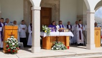 Bile, 20. kolovoza 2022. (Marijana Tomašević / grobljemira.info) – U povodu obilježavanja Europskog dana sjećanja na žrtve totalitarnih režima: fašizma, nacionalsocijalizma i komunizma, a koji se obilježava 23. kolovoza, na »Memorijalnom centru Groblje mira« na Bilima, u organizaciji Odjela Hrvatskog narodnog sabora (HNS-a) BiH za Drugi svjetski rat i poraće i Udruge Mir International te pod pokroviteljstvom HNS-a BiH, služena je sv. misa zadušnica za sve pobijene. Sv. misno slavlje predvodio je fra Miro Relota, definitor Bosanske franjevačke provincije i duhovnik bogoslova u Franjevačkoj bogosloviji u Sarajevu.