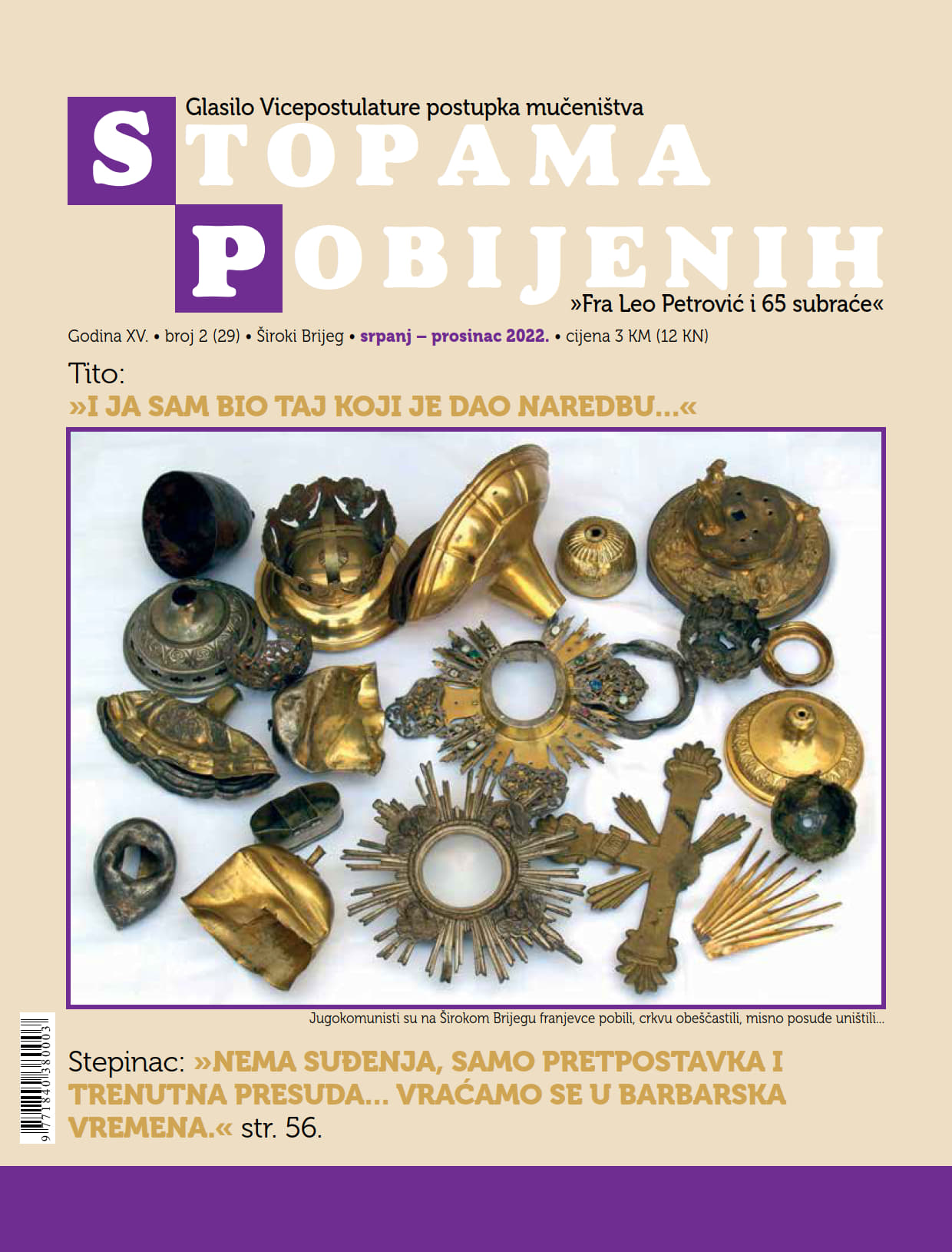 Široki Brijeg, 18. srpnja 2022. (Lucijana Kožul / pobijeni.info) – Ovih dana iz tiska je izašao 29. broj glasila »Stopama pobijenih« kojega uređuje Vicepostulatura postupka mučeništva »fra Leo Petrović i 65 subraće« na čelu s vicepostulatorom fra Miljenkom Stojićem. Već punih 15 godina ovo glasilo traga za istinom o pobijenim hercegovačkim franjevcima i o pobijenim članovima vjernoga puka Božjega.