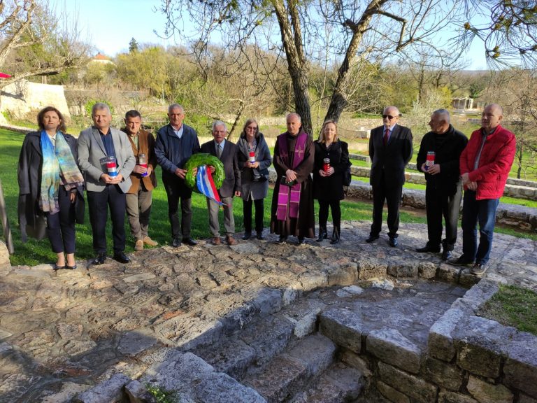 Široki Brijeg, 13. travnja 2022. (Anita Martinac / grobljemira.info) – Njegujući kulturu sjećanja i prisjećajući se prvih žrtava Drugoga svjetskog rata i poraća Hrvatsko žrtvoslovno društvo (HŽD) iz Zagreba, Odjel HNS-a za Drugi svjetski rat i poraće (Odjel) i Središte HSK za istraživanje posljedica totalitarizama u BiH (SHSK) organizirali su hodočašće pod nazivom »Stopama uporno prešućivanih hrvatskih žrtava u četrdesetim godinama XX. stoljeća«.