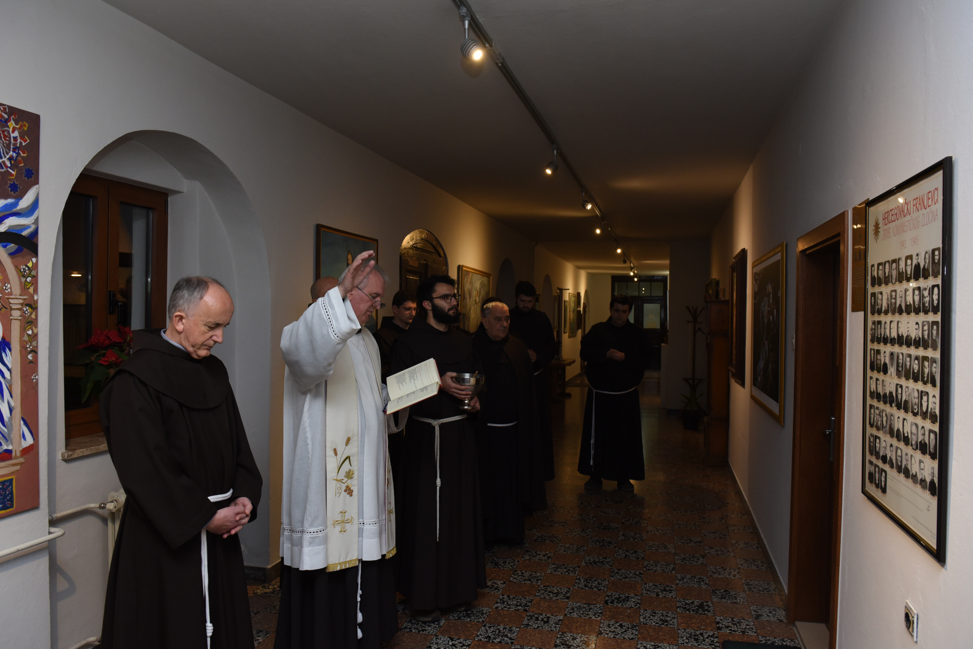 Nakon sv. mise provincijal je zajedno s fratrima iz samostana blagoslovio spomen ploču koja je postavljena na zbornicu iz koje su odvedena dvanaestorica fratara u ratno sklonište te tamo strijeljani metkom u zatiljak i zapaljeni. Ovako piše na ploči: »Iz ove su zbornice 7. veljače 1945. jugokomunisti vodili u ratno sklonište na ubijanje, jednoga po jednoga, 12 hercegovačkih franjevaca. Njihova su imena: fra Marko Barbarić, fra Stanko Kraljević, fra Ivo Slišković, fra Krsto Kraljević, fra Arkanđeo Nuić, fra Dobroslav Šimović, fra Tadija Kožul, fra Borislav Pandžić, fra Žarko Leventić, fra Viktor Kosir, fra Stjepan Majić i fra Ludovik Radoš.« Tomu je dodan i navod iz Svetog pisma: »Zlostavljahu ga, a on puštaše, i nije otvorio usta svojih. K’o janje na klanje odvedoše ga; k’o ovca, nijema pred onima što je strižu, nije otvorio usta svojih.« (Iz 53,7)