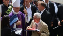 Jazovka, 24. kolovoza 2025. (Damir Borovčak / Lucijana Kožul) – Zagrebački nadbiskup Dražen Kutleša predvodio je jučer, u subotu 23. kolovoza, na Europski dan sjećanja na žrtve zlosilnih režima, dostojanstven pokop 814 žrtava jugokomunističkog režima otkopanih iz jame Jazovka. Uz nadbiskupa Dražena Kutlešu sumisili su vojni ordinarij Jure Bogdan, križevački vladika Milan Stipić, gospićko-senjski biskup Marko Medo, umirovljeni vojni ordinarij Juraj Jezerinac i umirovljeni grkokatolički biskup Križevačke eparhije Nikola Kekić te brojni svećenici.